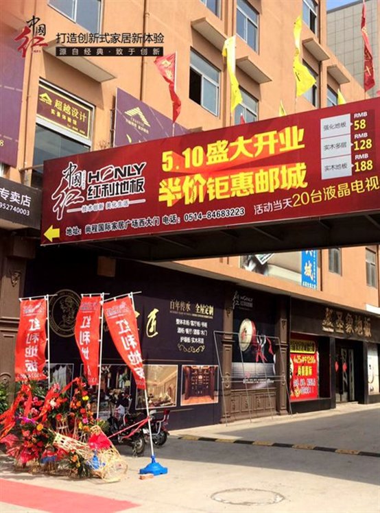 2015年5月10日,红利富实家族又增添一名新成员! 在充分的准备和精心筹划下,红利地板·木门江苏高邮店于盛大开业!位于江苏高邮的红利地板专卖店,地理位置优越,店面装潢风格简约大方。