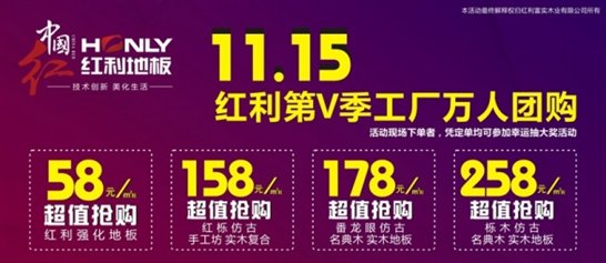 2015年11月15日,红利地板万人工厂团购会即将震撼登场啦! 真正的工厂直供价,拿最少的钱,拥有最健康环保的地板,为您省下数月工资,您还在犹豫等待吗?!