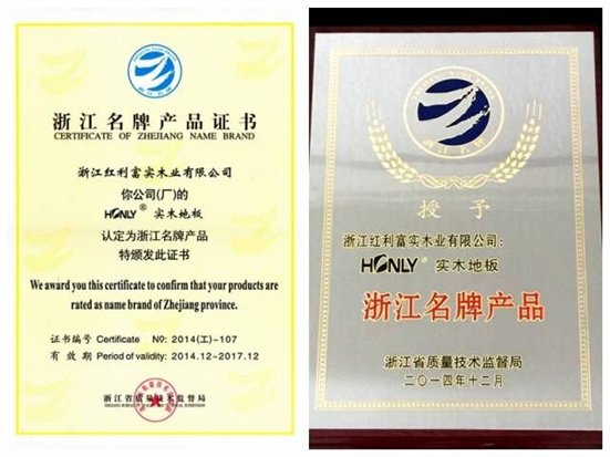 这一年,公司旗下红利牌实木地板凭借良好的市场知名度、美誉度及优越的产品品质和品牌价值荣膺“浙江省名牌产品”称号;