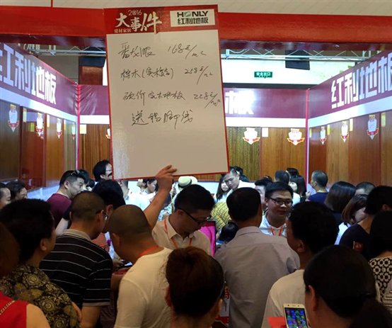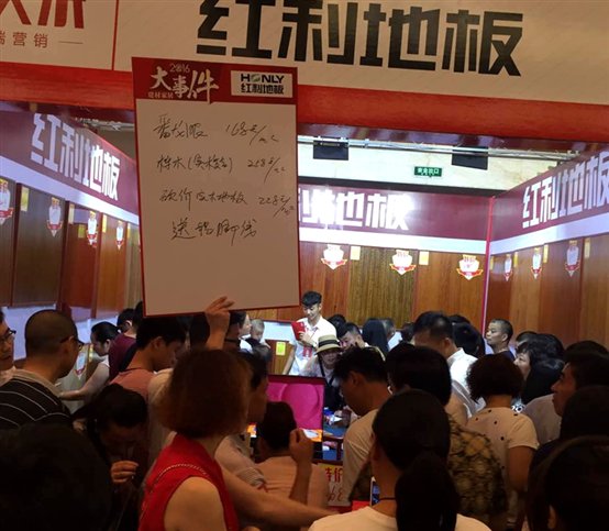本着对消费者负责的原则,红利地板对本次活动十分重视,在公司倾力支持以及红利地板桐乡店的共同努力下,红利为本次活动带来了众多新品及多款热销精品,以最大的诚意、最强力度的优惠,以及一如既往的金牌售后服务,借此活动之际来回馈广大消费者,以满足不同客户的不同需求,同时,更是带来了白蜡木、橡木等众多名贵木种的地板参展,还给现场定单的业主做出重量级让利,超值套餐,疯狂折扣……吸引众多业主驻足观看,咨询下单。一天下来,红利展位每每被围观的业主挤爆,营造出“买卖一家亲”的热闹场景。红利地板通过活动推广品牌的同时,也赢得了众多业主的销售订单。红利桐乡站告捷!