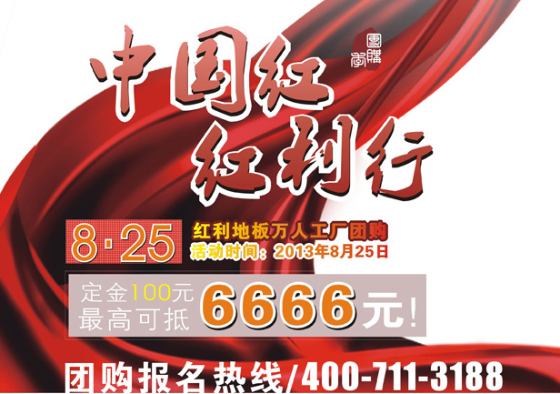 8月25日红利地板——中国红·红利行 ,大型工厂团购正式启动了,期待你们的来临,详情请见店内各大海报。